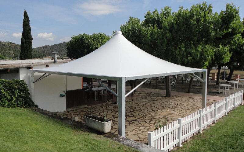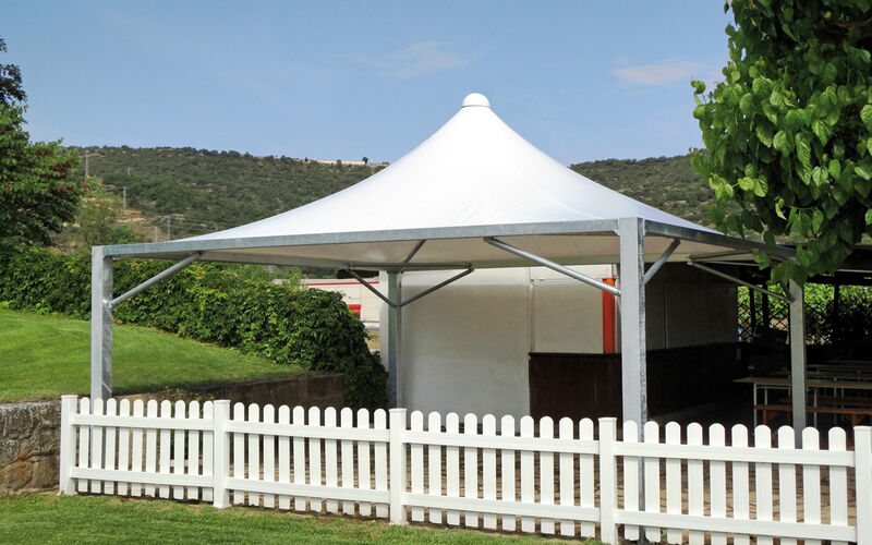 - Dachbespannung wird direkt in Wasserrinne geführt, somit keine Schmutzbildung.