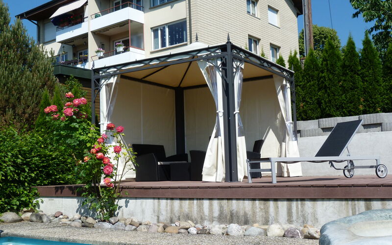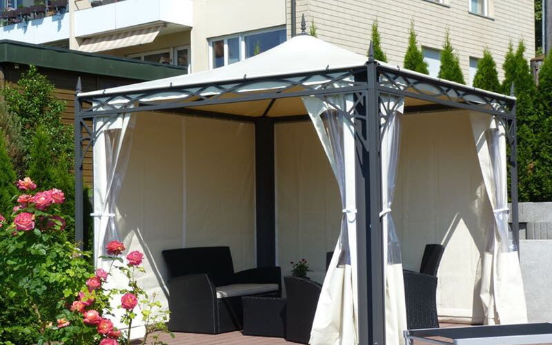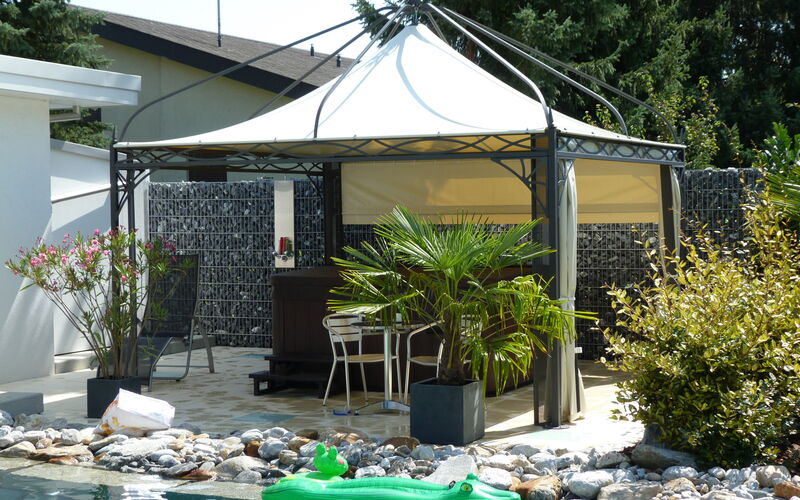Bestücken Sie den Pavillon mit Dekorationen und Vasen, ganz nach Ihren Wünschen.