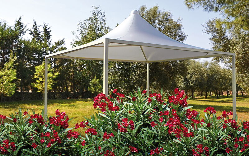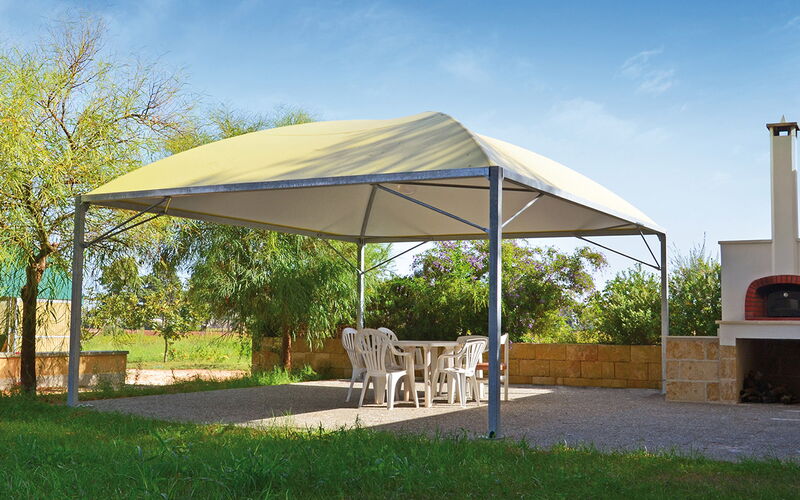 Ganzjährige Überdachungen aus Stahl oder Aluminium mit PVC Blachenstoff