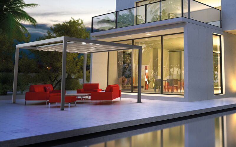 Die Talas Pergola mit Faltdach - optional mit LED-Licht und Somfy Antrieb