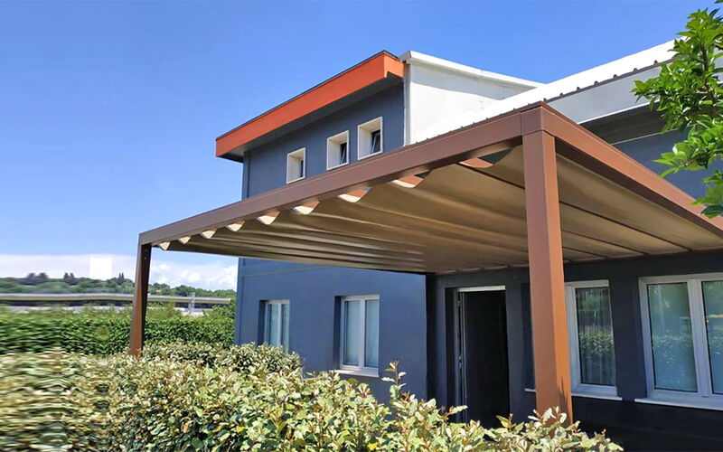 Sie fahren gerne Cabrio? Diese Faltpergola lässt das Dach schnell öffnen.